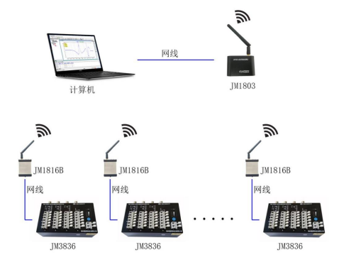 JM3836動(dòng)靜態(tài)信號(hào)測試系統(tǒng),4通道/臺(tái),每通道可以用于測應(yīng)變或測振動(dòng)。測振動(dòng)可配接電壓輸出型傳感器(拾振器)。儀器支持AC220V供電,也支持外接直流電源(蓄電池)供電,并且直流供電的范圍很寬,使用十分便捷,多臺(tái)儀器有線組網(wǎng)(采用易于制作的網(wǎng)線)測試時(shí),可通過外接直流電源(蓄電池)供電線纜集中供電,方便了現(xiàn)場的布線。儀器每個(gè)測點(diǎn)橋路獨(dú)立設(shè)置,每臺(tái)儀器有一個(gè)補(bǔ)償片接入端子,可在軟件中分別為每個(gè)測點(diǎn)選擇補(bǔ)償片,現(xiàn)場測試方式更加靈活。每個(gè)測點(diǎn)有一個(gè)BNC輸入端子,設(shè)置為電壓輸入時(shí)可以直接連接如拾振器的電壓輸出型傳感器。儀器每個(gè)通道采用獨(dú)立24bits ADC,具有較高的信噪比,保證每個(gè)通道同步采集,多臺(tái)儀器組網(wǎng)時(shí)也能保證所有通道的同步性。